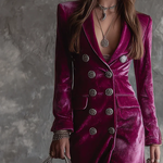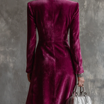 Evelis™ | Ljubičasta dugačka haljina s gumbima, baršunastog materijala i kroja sakoa