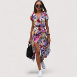 Machen Sie einen unvergesslichen Auftritt mit diesem fantastischen Wickelkleid mit Blumenmuster, das sich anmutig bewegt und Ihre Figur schmeichelt. Egal, ob Sie durch die Stadt schlendern oder zum Essen ausgehen, es bietet Stil und Komfort zugleich. Leicht zu tragen, noch leichter zu lieben.