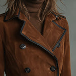 Siona™ | Dugački kaput s dvostrukim kopčanjem s detaljima od brušene kože i crnim rubovima