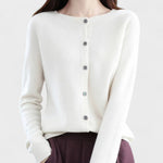 Svestrani kardigan ravnog, blago opuštenog kroja. Fina, mekana pletenina ugodna je na koži i lijepo pada bez nabiranja. Klasični okrugli izrez i linija gumbi daju uredan, profinjen izgled, dok rebraste manšete i završetak čuvaju formu. Nosi ga zakopčan kao pulover ili otvoren preko košulje, T-majice ili haljine – od ureda do vikenda.