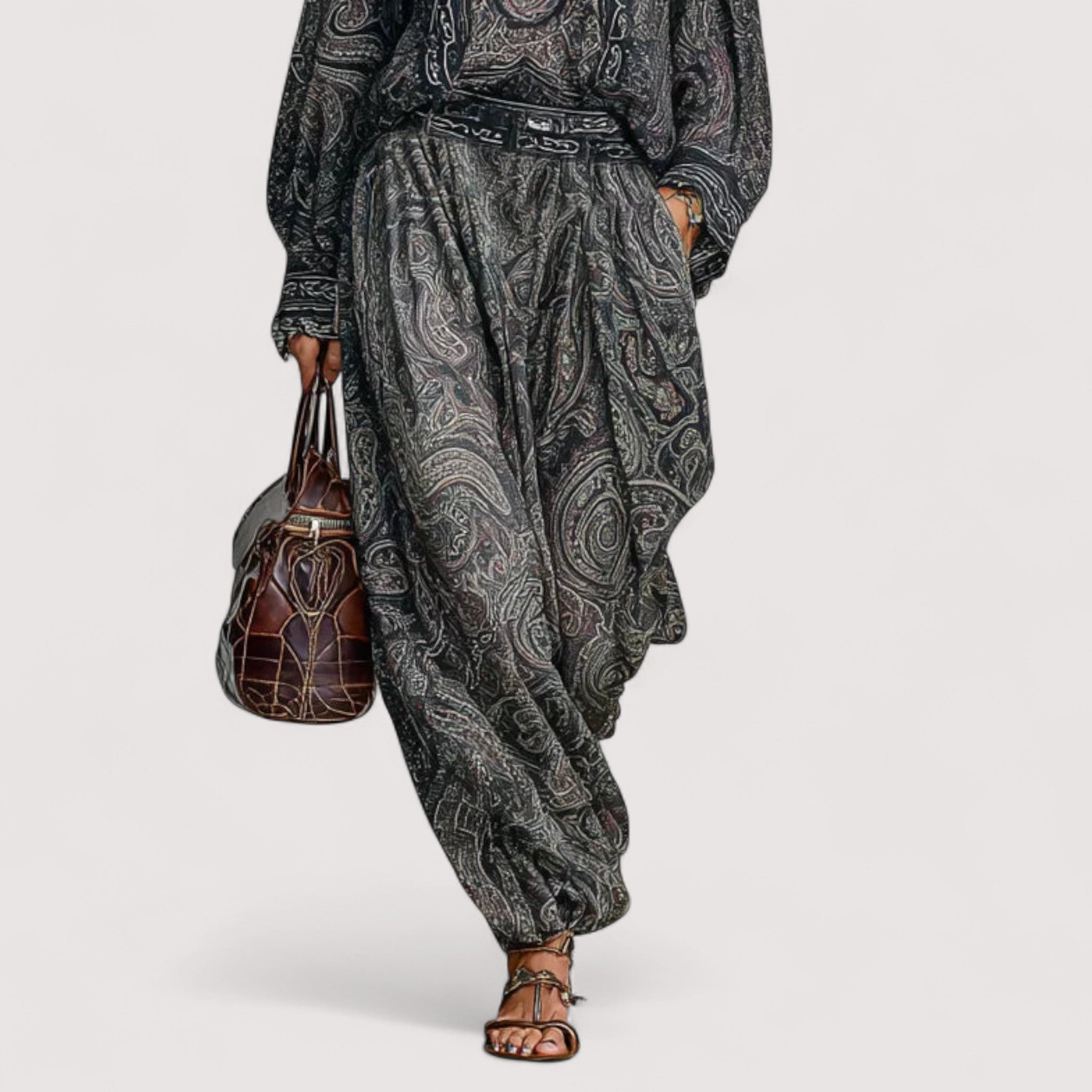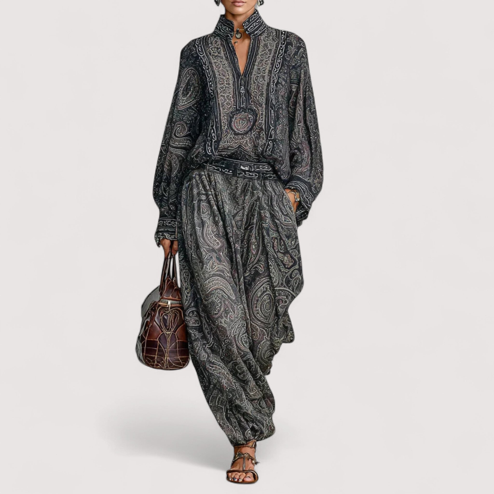 Aveline™ | Vintage set od dva dijela s majicom dugih rukava s Paisley printom i hlačama