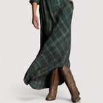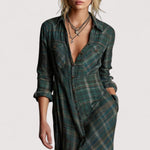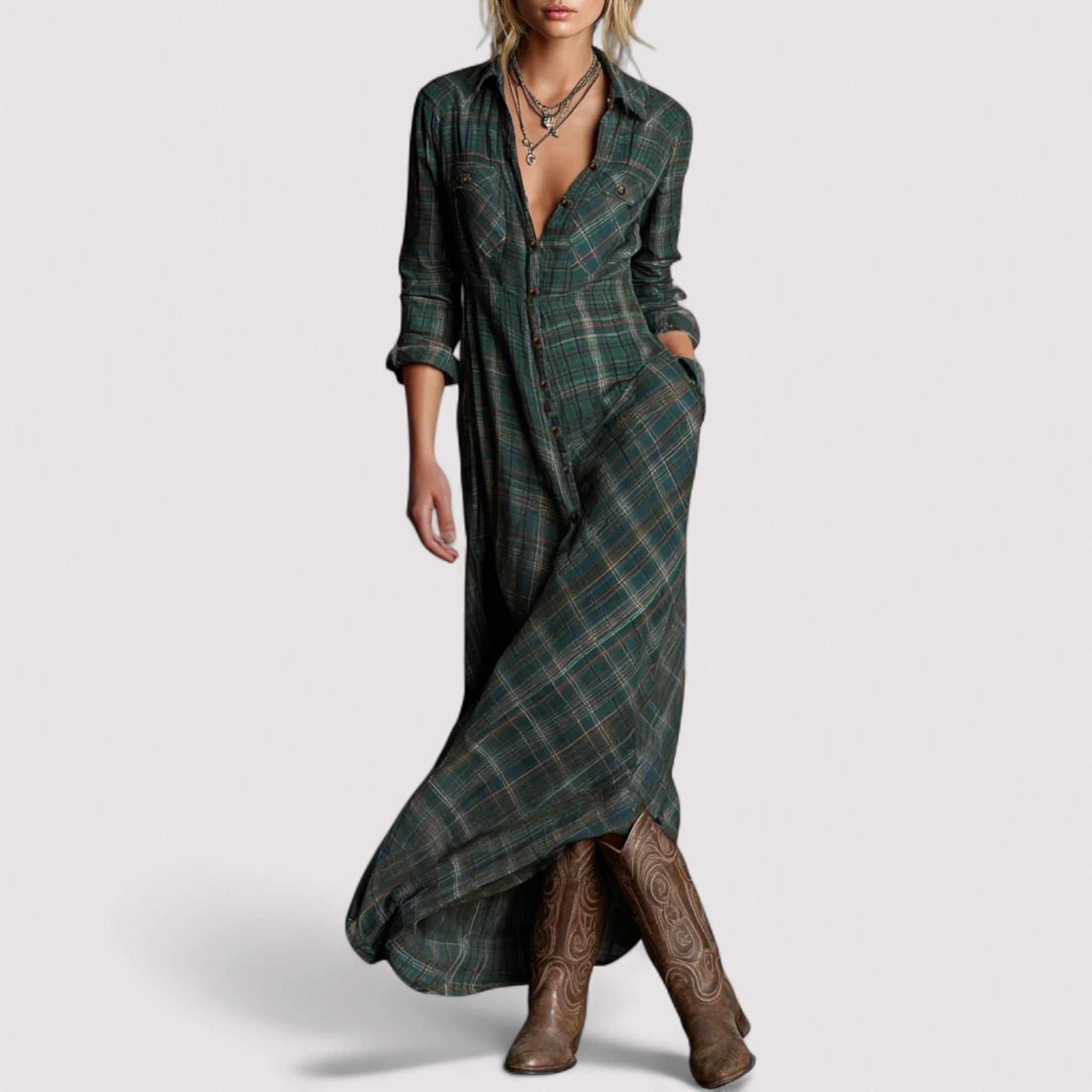 Fiora™ | Zelena maksi haljina kroja košulje, s kariranim uzorkom, reverom i jednim redom gumba