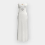 Elegantna i prozračna, ova haljina bez naramenica ističe ženstvenost s diskretnim stilom. Idealna za sunčane dane i ljetne večeri s stilom i udobnošću.