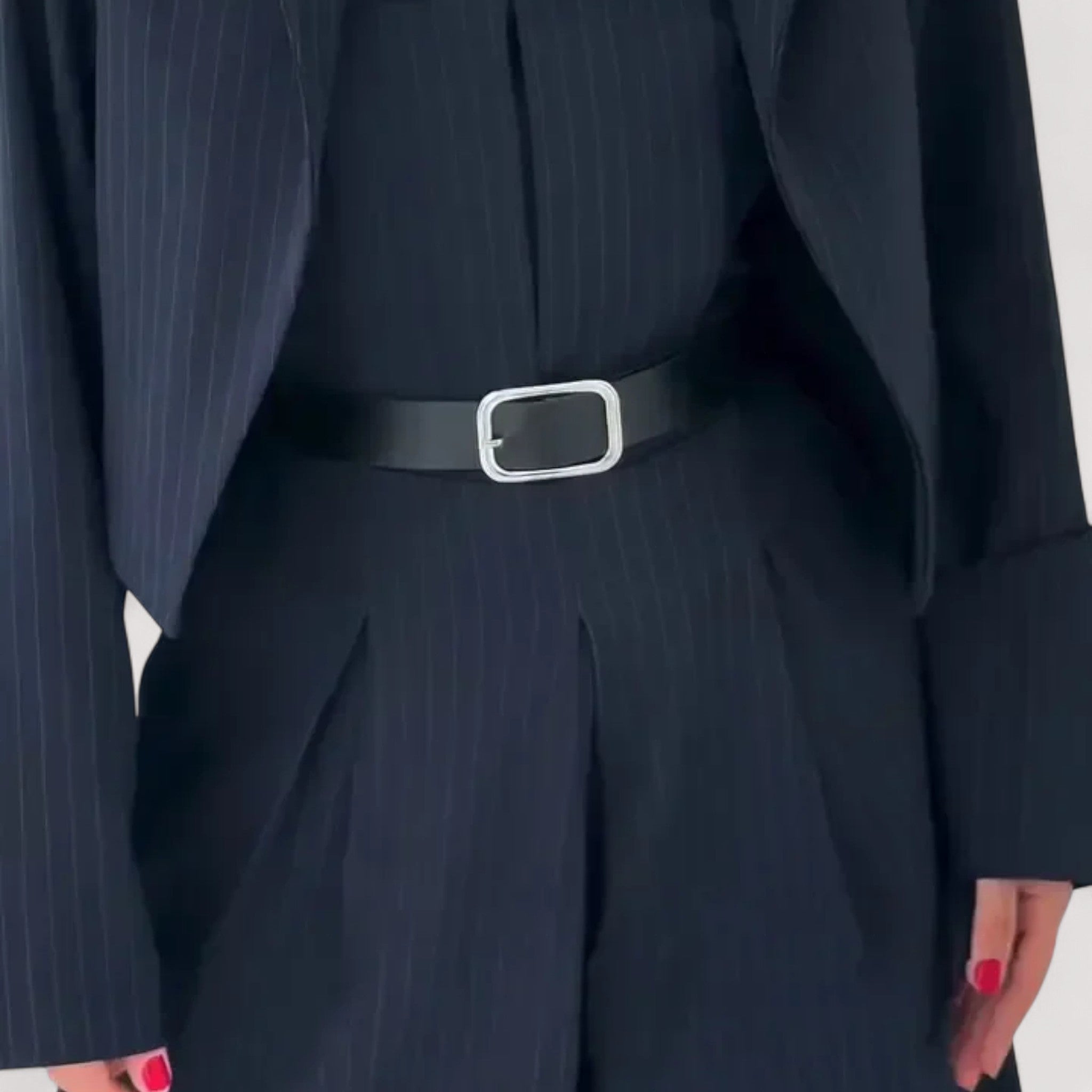 S ultra-trendi, širokim hlačama, strukturiranim bustierom i pripadajućom lepršavom jaknom, ovaj je set dizajniran da naglasi sve siluete.