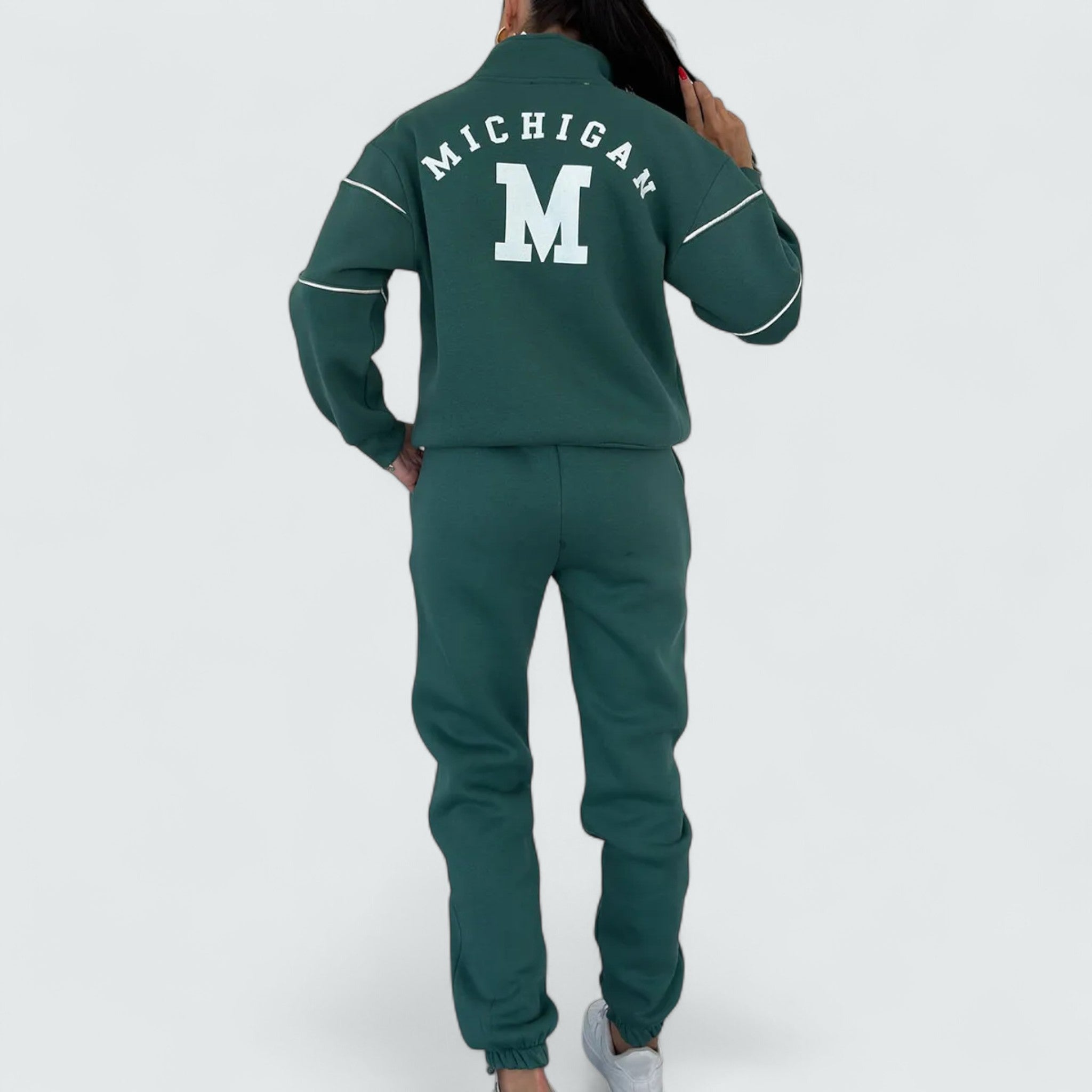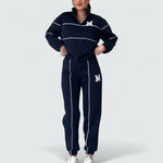 Opusteni, moderni komplet koji s lakoćom spaja udobnost i eleganciju. Savršen za kod kuće, slobodno vrijeme ili opuštene prilike.