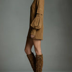 Inara™ | Vintage opuštena mini haljina od brušene kože s dolčevita ovratnikom