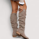 Prepustite se boho slobodi i profinjenoj izradi s ovim čizmama do koljena. Njihova meka, perforirana tekstura i udobna peta savršene su za svaku priliku.