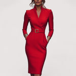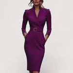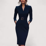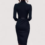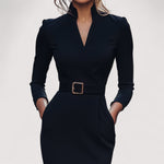 Nora™ | Elegantna crna haljina s remenom i mandarin ovratnikom